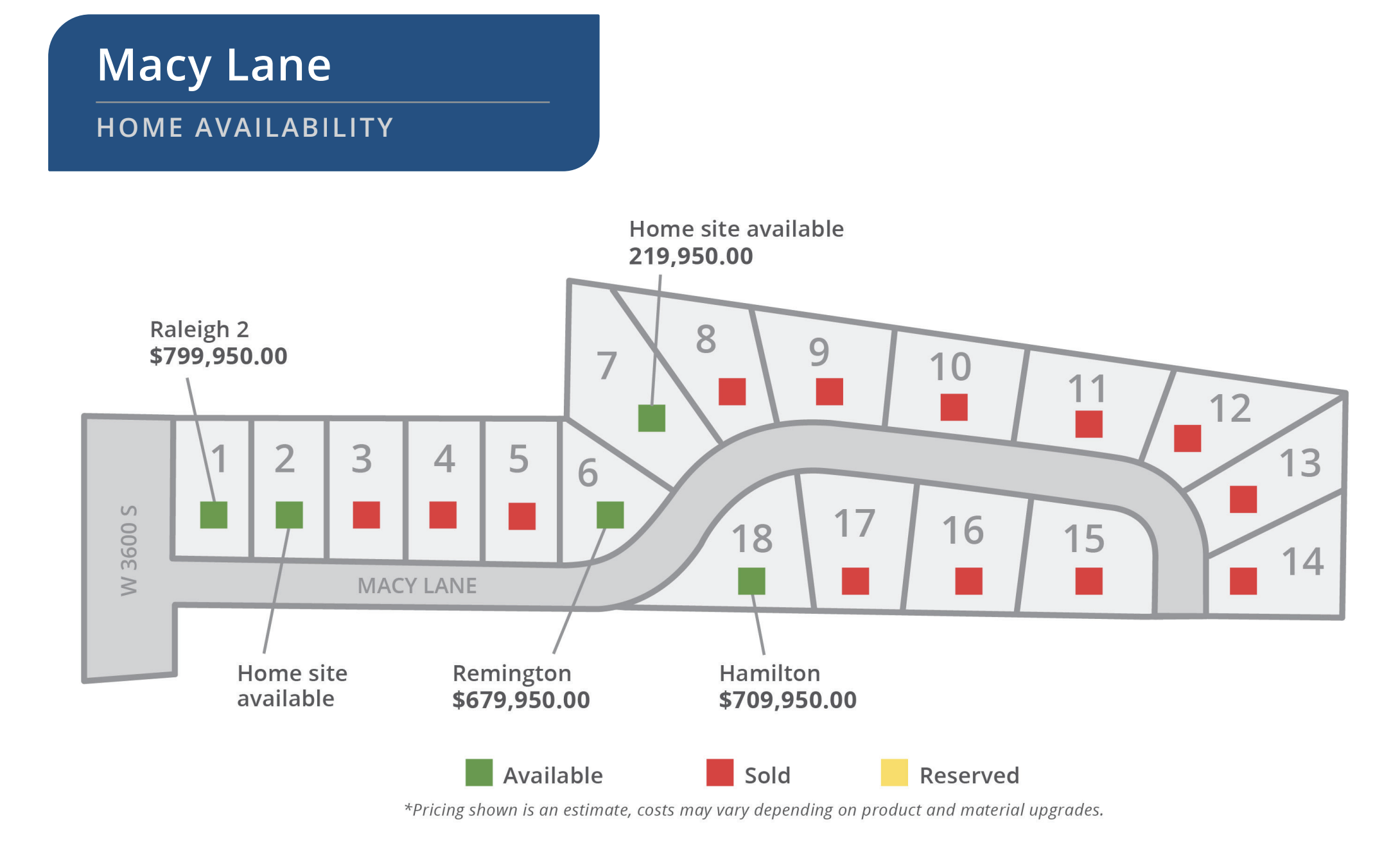 Our new Macy Lane development is located in beautiful West Haven, UT. Offering lot sizes which range from 0.31 acres up to .40 acres, we are sure we can build the perfect dream home for you while also offering a spacious yard to make your own!